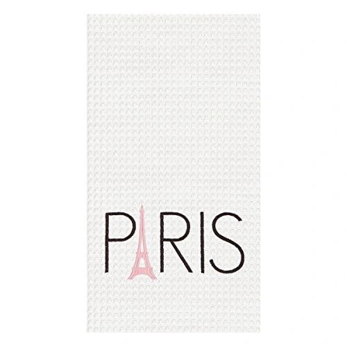 This 100% cotton waffle weave, absorbent towel measures 27″ x 18″. The kitchen towel features a pink Eiffel Towel as the “A” in the word “PARIS”. The embroidery is centered on the lower half of the towel. Fun and functional! Machine wash.